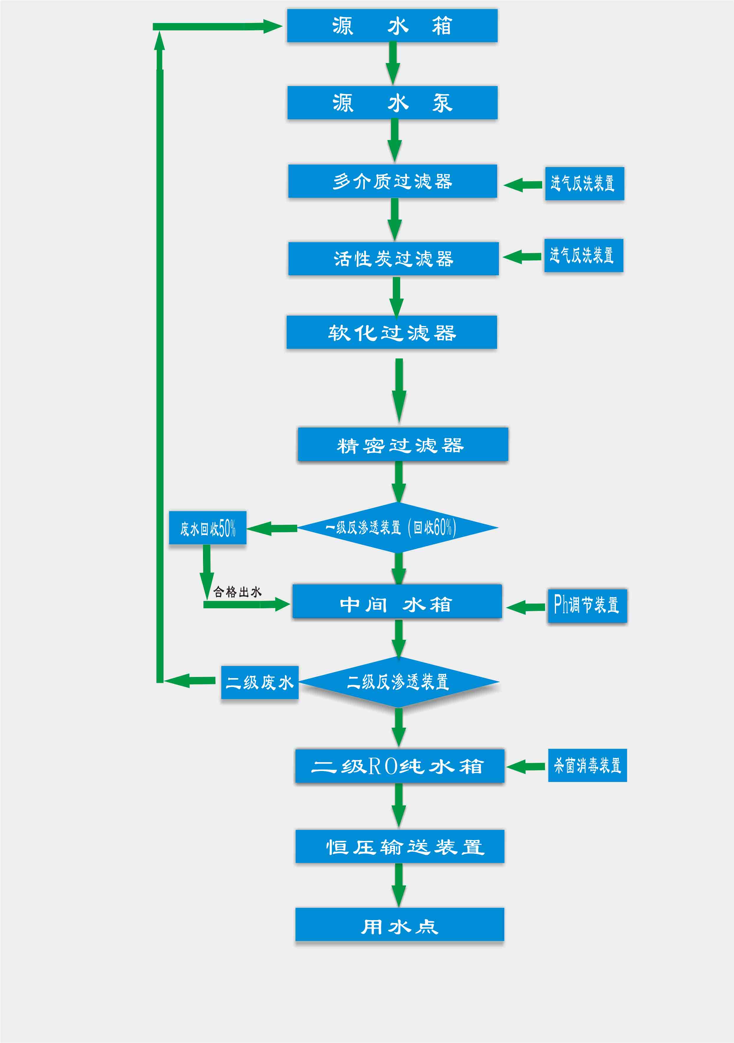 3,工藝(yì)要求:需采用雙級反滲透係統,且必須有(yǒu)製水係統及(jí)輸送管道殺菌裝置